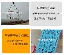 详细介绍 扁平吊装带U型吊装一个很简单的吊装方式,只需要将被吊物放置在合成纤维吊装带的中心位置后进行起吊即可。但是吊装时由于物体与吊装带的夹角很难控制,所以让U型吊装变成了高风险吊装方式,在使用时都尽量避开。